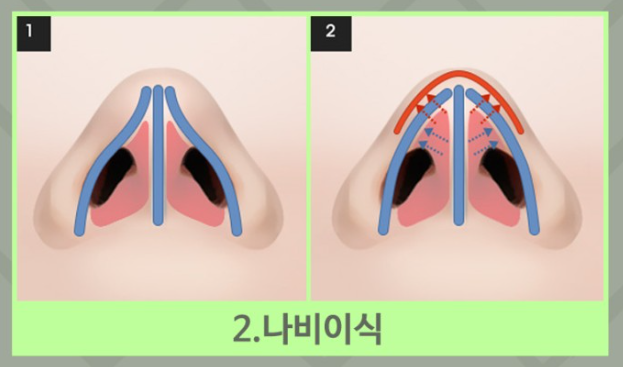 비중격과 상외측 연골 사이에 연골을 이식하여 비밸브 공간을 확보하는 방법이며 삽입된 연골로 인해 즉각적으로 양쪽 비밸브가 넓어져 편안한 호흡이 가능합니다.