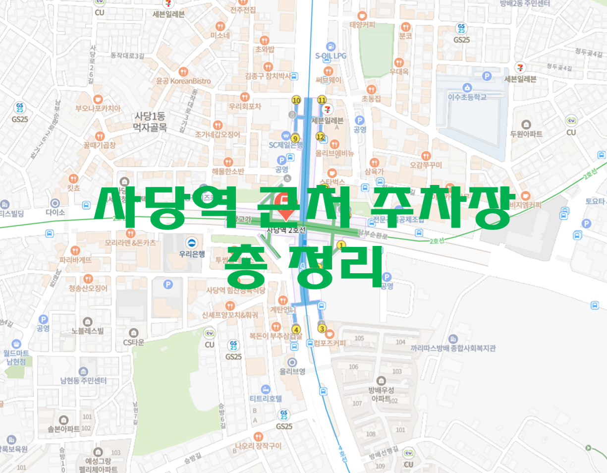 - 특징: 공영주차장보다 저렴하며, 사당역과 가까워 효율적.
