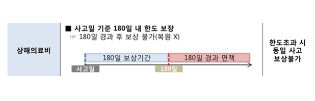 + 퇴원일로부터 180일이 경과하여 동일한 사유로 재입원한 경우는 다시 보상