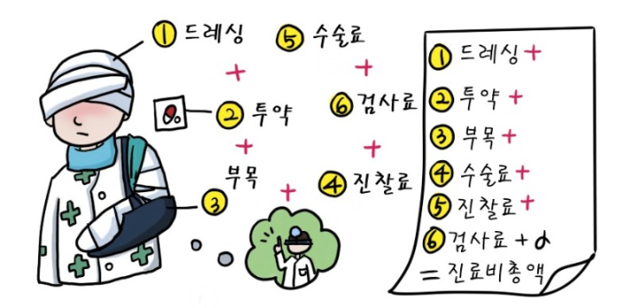 의료서비스 제공자가 제공한 각각의 의료서비스에 대한 비용을 별도로 계산하기 때문에, 환자 입장에서는 병원비가 얼마나 나올지 예상하기 어렵습니다.